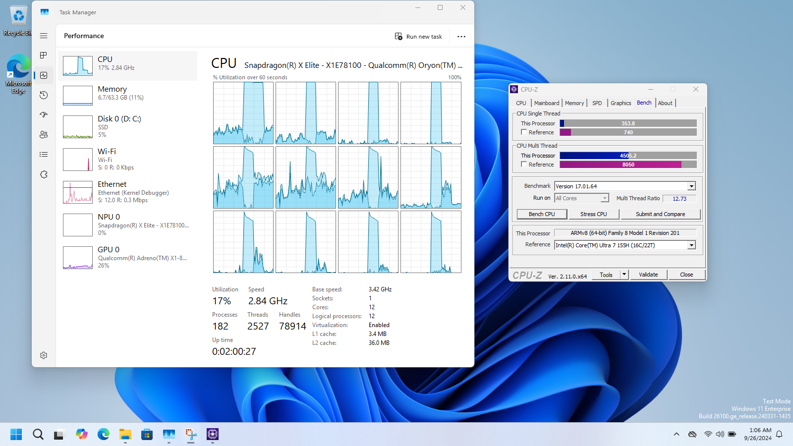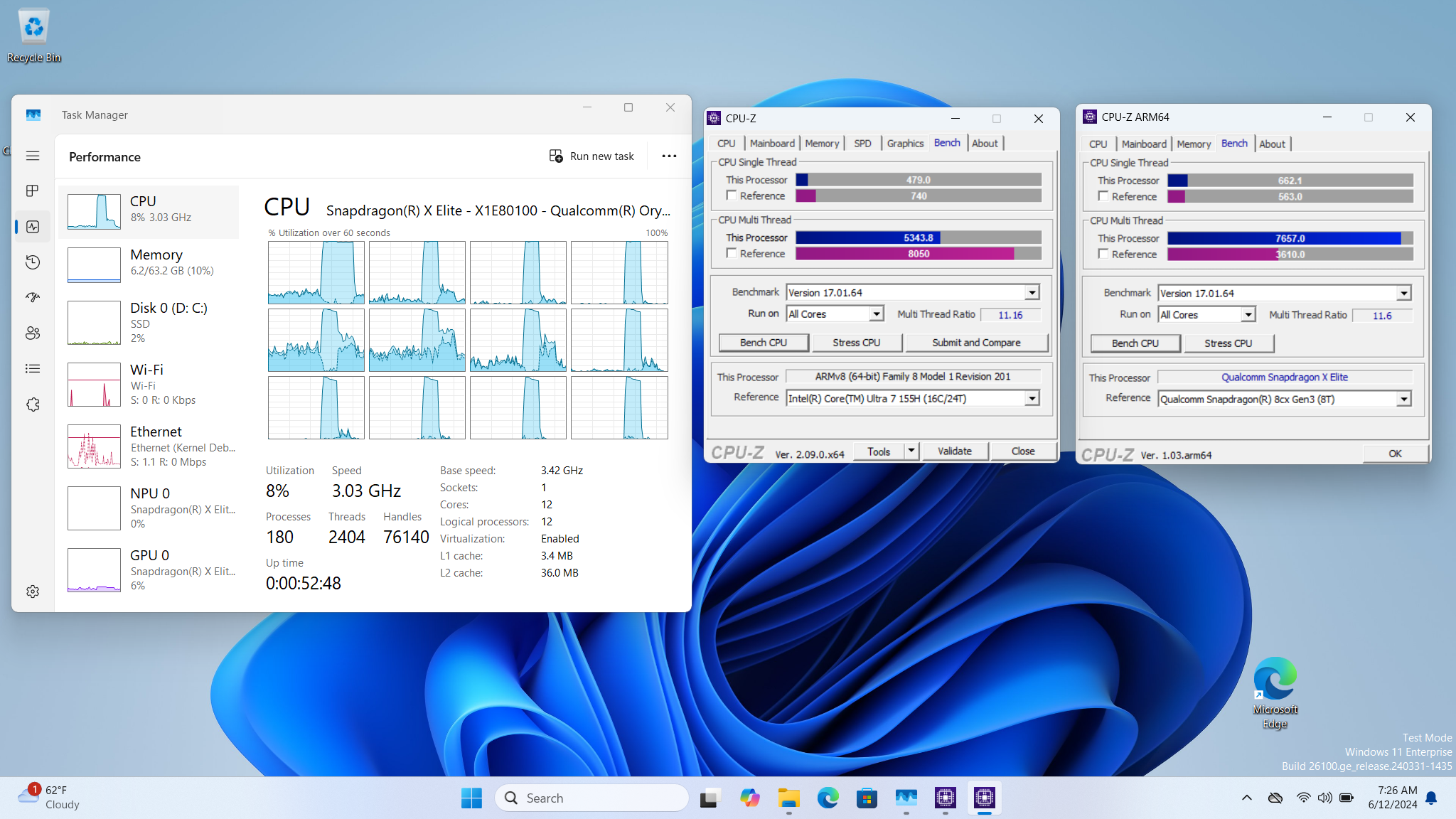 順便附帶先前測試過的 CRD Snapdragon X Elite X1E80100