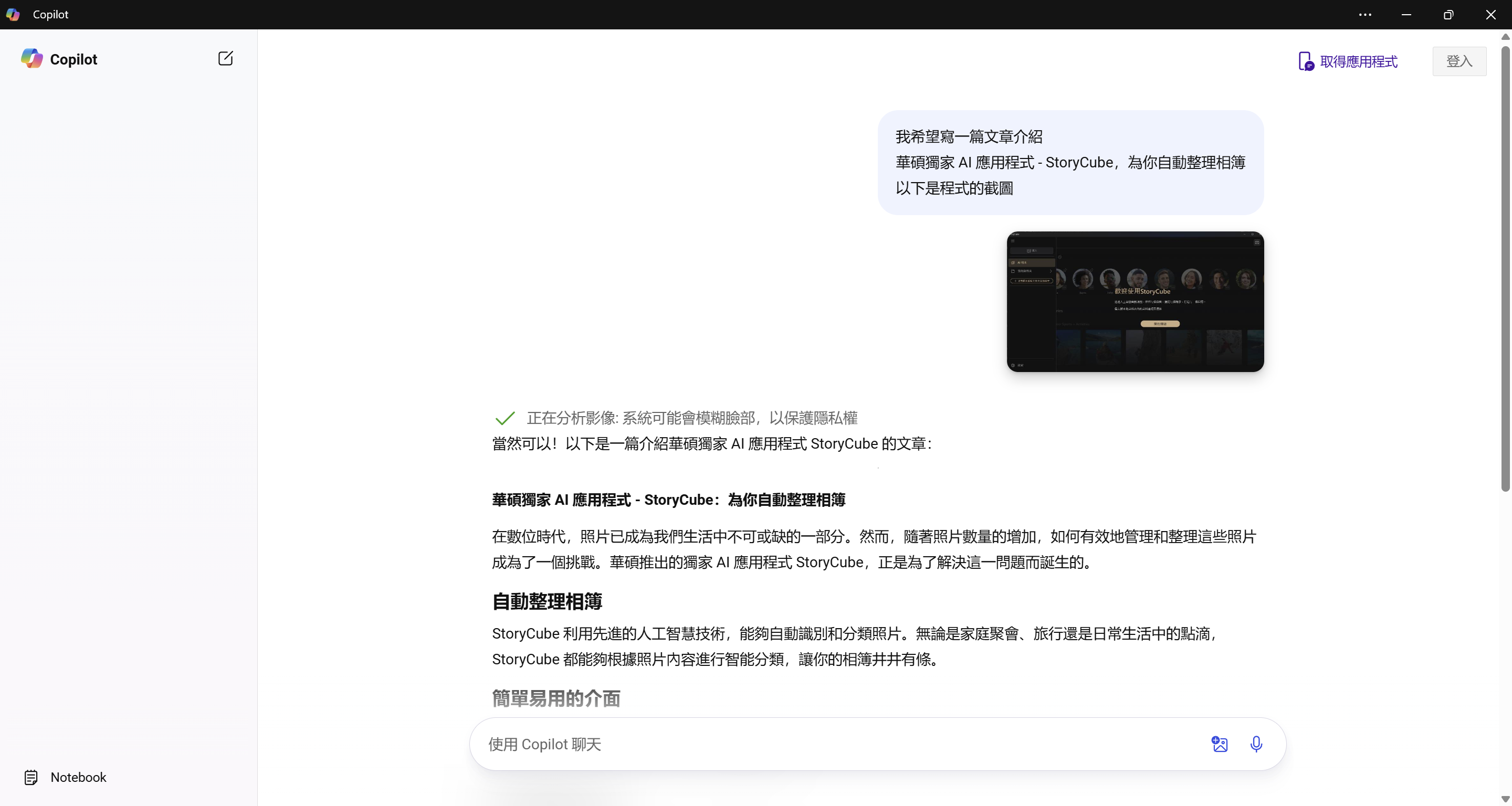 如果我不說,是否可以判斷出 ASUS StoryCube 的說明,其實是我透過 Copilot+ 產生出來的呢?