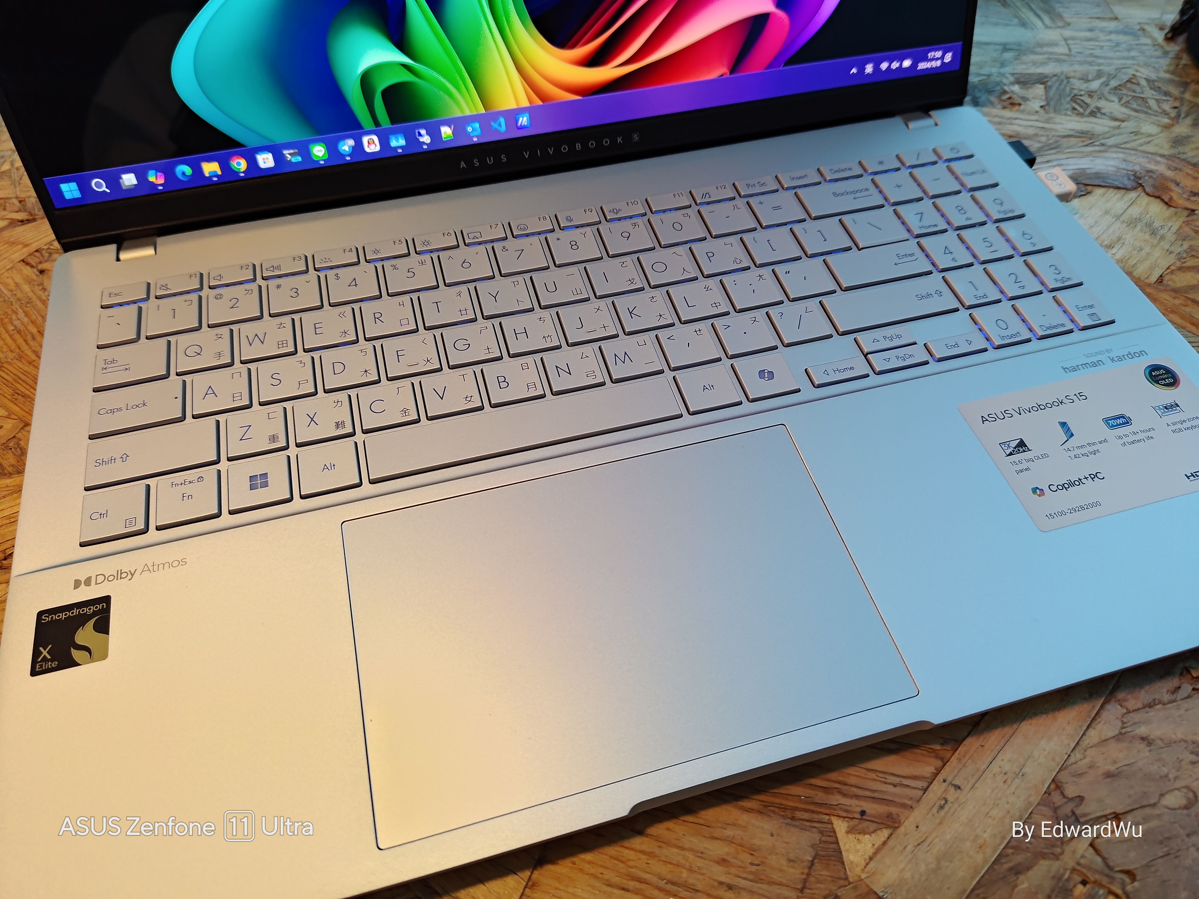 這次有幸體驗到 ASUS Vivobook S15 (S5507)。作為 Snapdragon Insiders 的一員,過去每次高通推出新旗艦 SoC,我都會第一時間嘗試。雖然這次的 Snapdragon X Elite 並非用於手機端產品,但仍保有 Arm 架構的省電特性,特別適合進行文書處理、上網等輕度辦公任務。