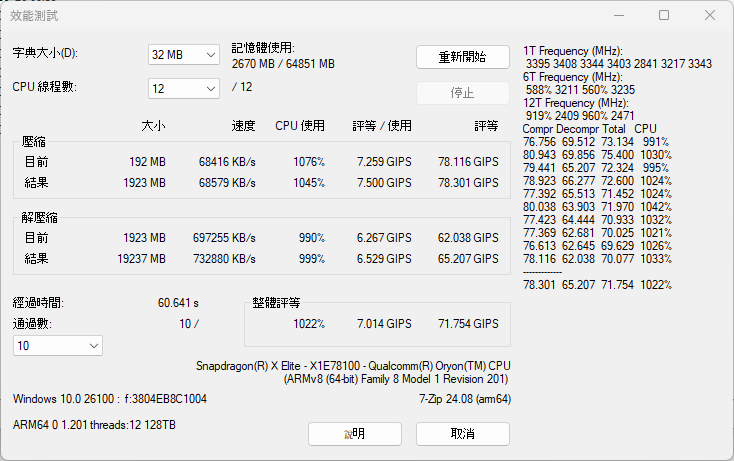 但有些軟體不能讓 Arm64 的 Windows 執行,就只列出 Arm64 版本的測試結果