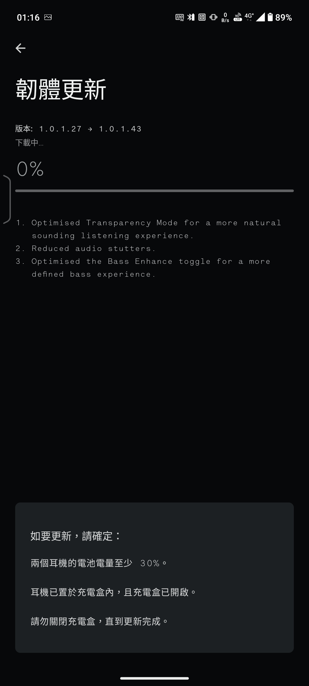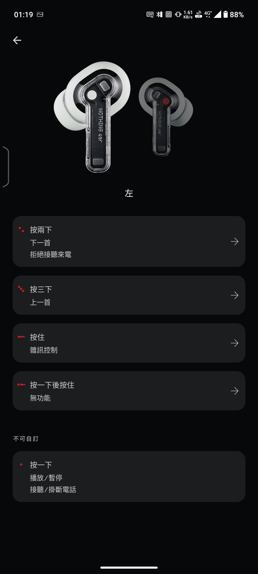 再者,我對於可以在 APP 上調整耳機的參數設定、提供 OTA 更新韌體,以及支援降噪切換的功能也是十分嚮往。在 Nothing Ear 系列推出之前,我也是觀望許久,由於我對於耳機的預算有限,沒辦法一個個買回來測試,相當擔心踩雷的風險。就好比 Pixel Buds A-Series,購買之前也是看中它的 OTA 更新功能,結果到現在,我只更新過2次,就被放生了。