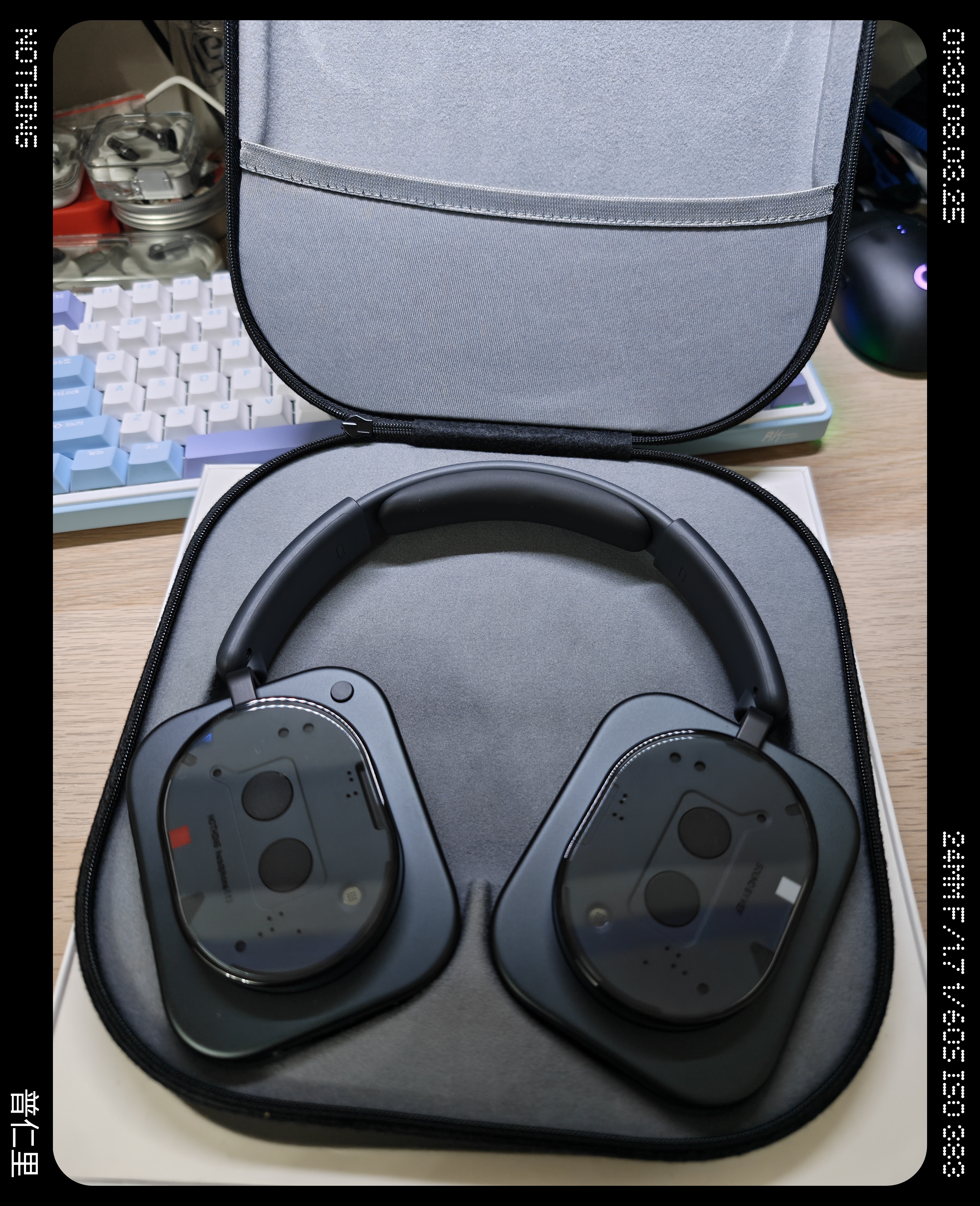 而我這次取得的 Nothing Headphone (1) 是黑色的版本,但我原先預期是希望取得白色的,由於我的 Nothing Phone (3) 是白色的版本,所以希望是可以湊成一對。 但有些許可惜,最終取得的是黑色的版本,但在這個月的長測當中,我則是越看越喜歡,總覺得黑色也相當有質感,或是黑色、白色都是相當好看,也是不錯的選擇。