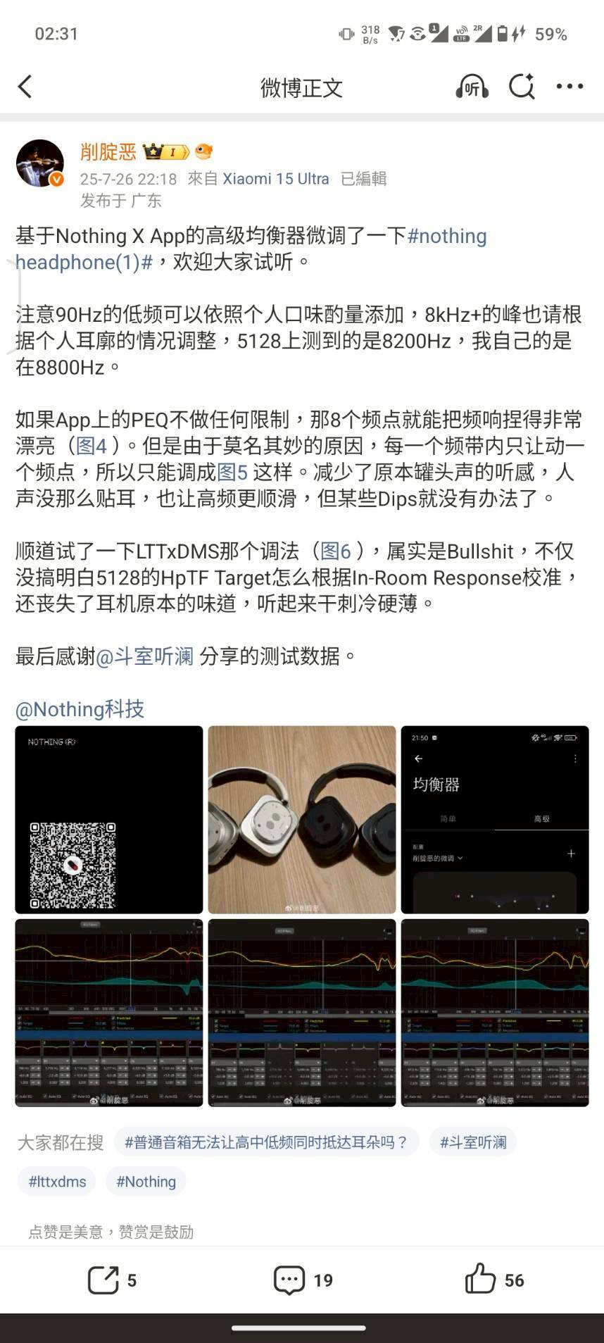 並且 Nothing X 的 APP 當中也有許多設定可以修改,而我也在網路上找到大陸博主「削腚恶」提供的 Nothing Headphone (1) 特調 EQ 設定檔