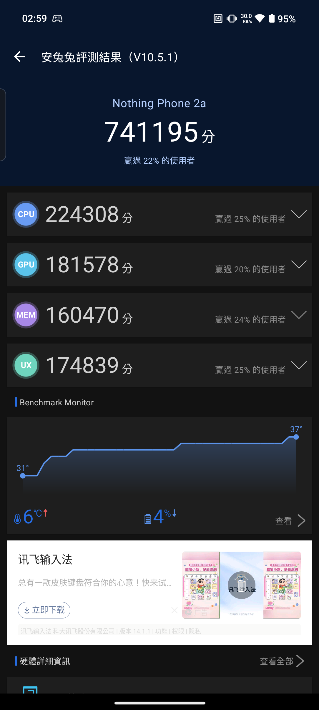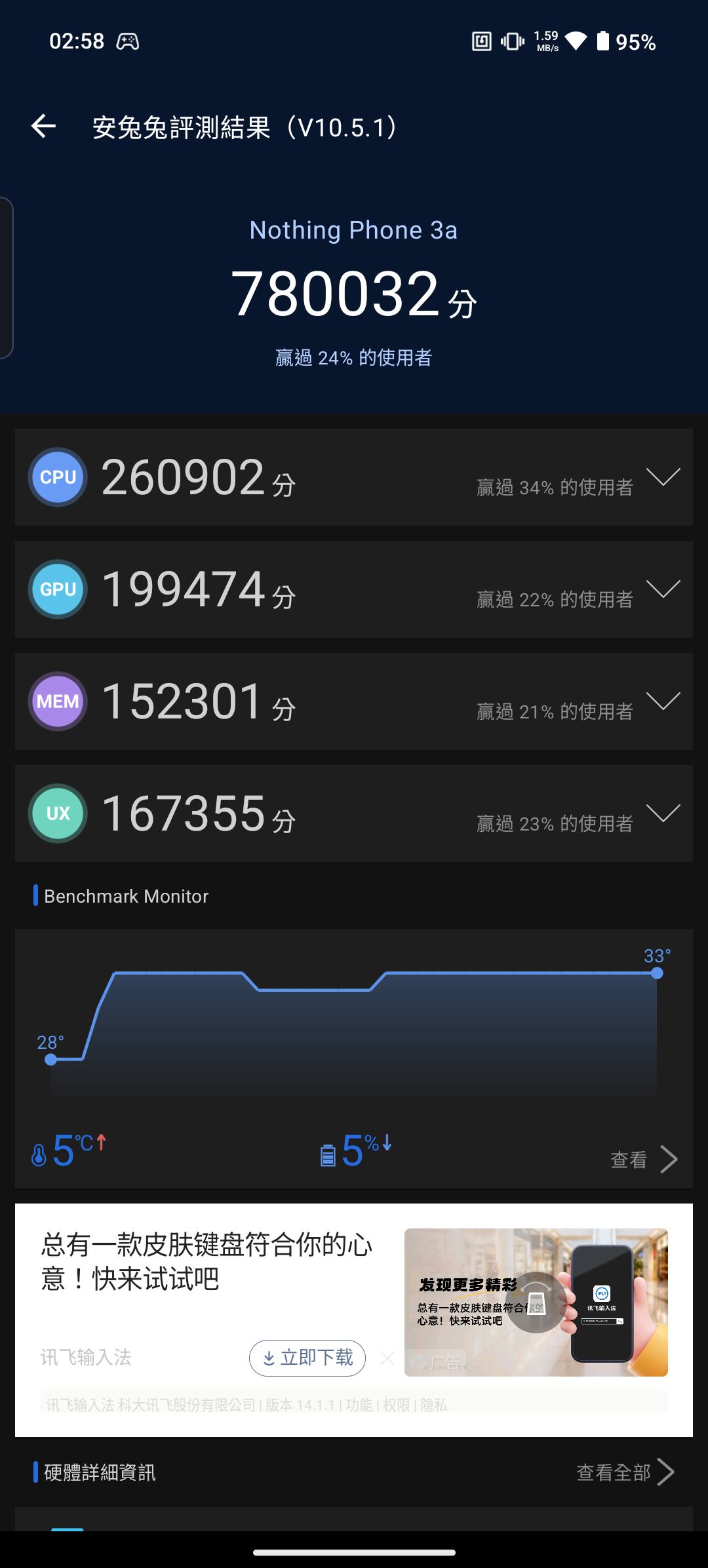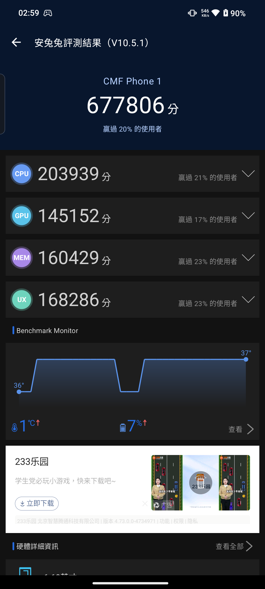 另外,網路上目前對於 Snapdragon 8s Gen4 的評價,絕大多數都認為這顆 SOC 蠻熱的,我必須誠實地說,這顆 SOC 確實是會有發熱的情形。但僅限於在高負載的條件之下,一般日常使用,其實一點也不燙,甚至連溫都說不上,不過 QRD8735 一旦開始跑效能測試,那可說是相當燙手,燙到我一度無法從桌上拿起來。