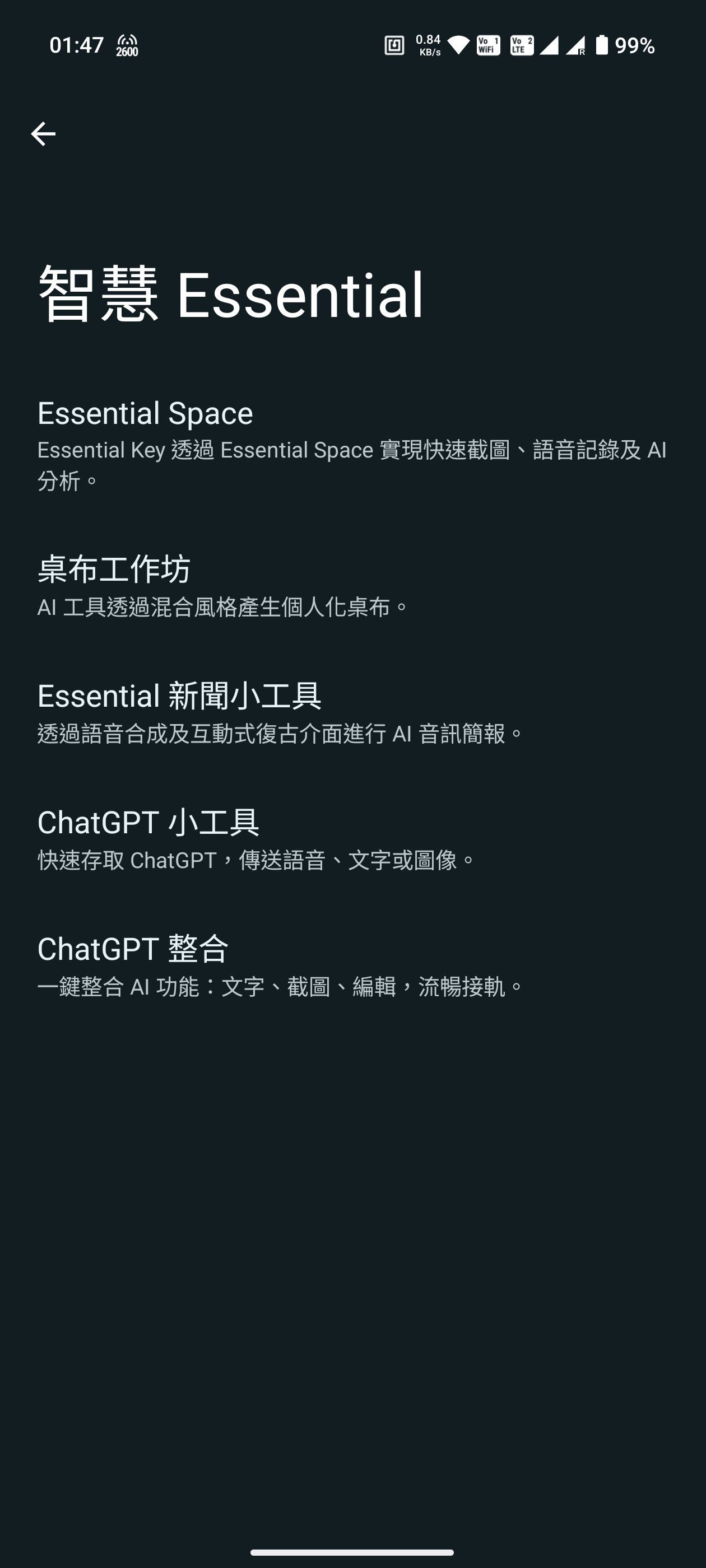 智慧 Essential — 從 Nothing Phone (3a) 系列開始,就加入的 Essential Space 在 Nothing Phone (3) 上面正式升級成為完全體 - 「智慧 Essential」 這次的智慧 Essential,可說是整合了許多東西。其中最吸引我的其實是「Essential 錄音機」,因為在這個功能之下,可以在翻轉螢幕的情況下悄悄的開始錄音,最終還可以用 AI 進行會議摘要,相當實用。 以及整合 ChatGPT 的功能,可以更快速的把截圖跟文字交給 ChatGPT 做分析或是討論,這個對於有購買 ChatGPT Plus / Pro 的人,那就是一大福音。