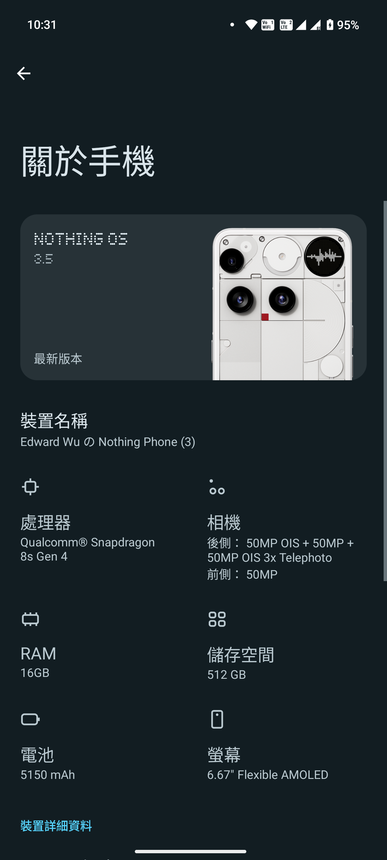 Nothing Phone (3) 出廠即搭載目前最新的 Nothing OS 3.5 Android 15 版本,而我也在收到手機之後,再度接收到兩個版本的更新 分別是 Nothing OS 3.5(Metroid-V3.5-250626-1934) 以及 Nothing OS 3.5(Metroid-V3.5-250711-2047)