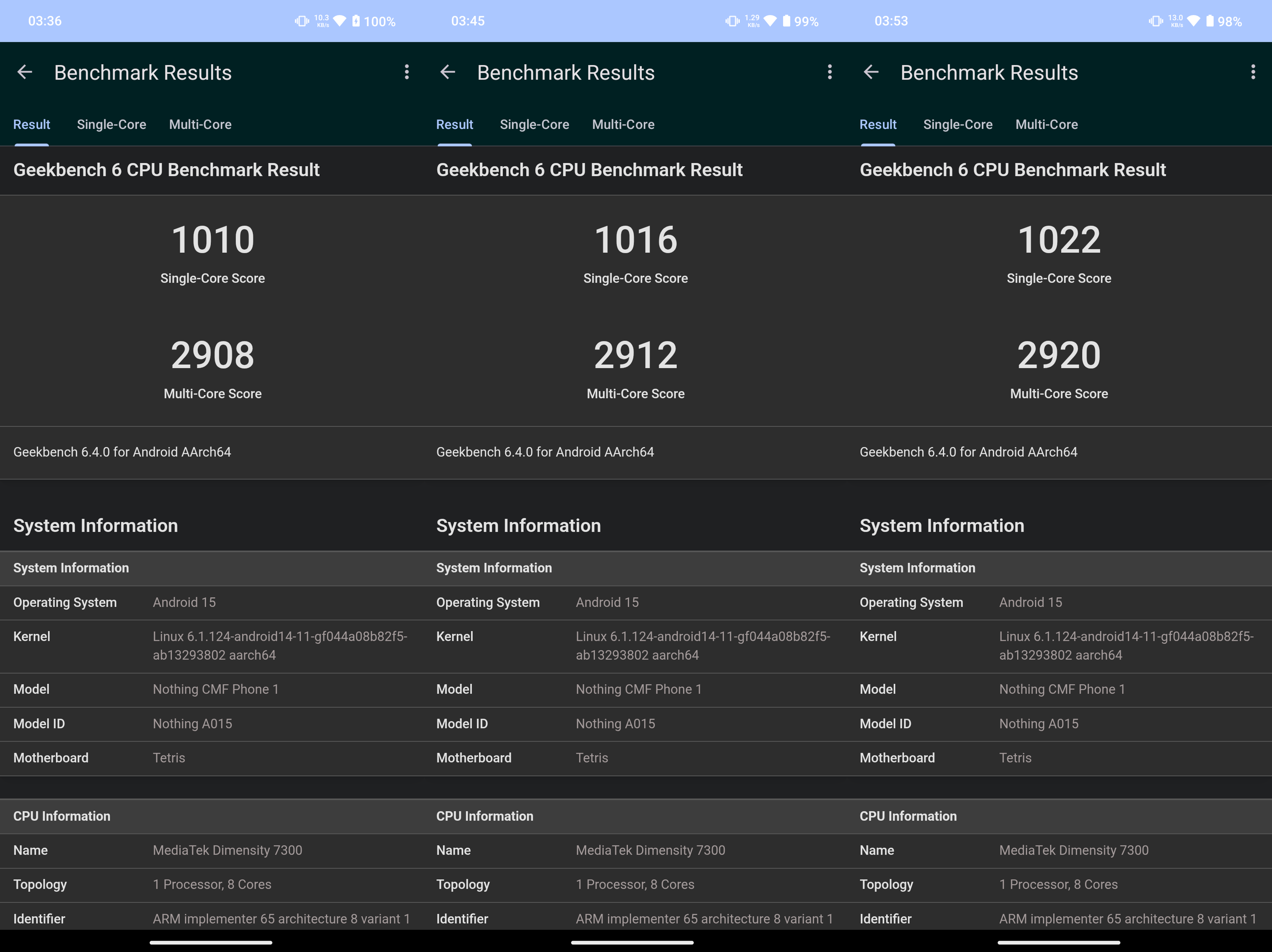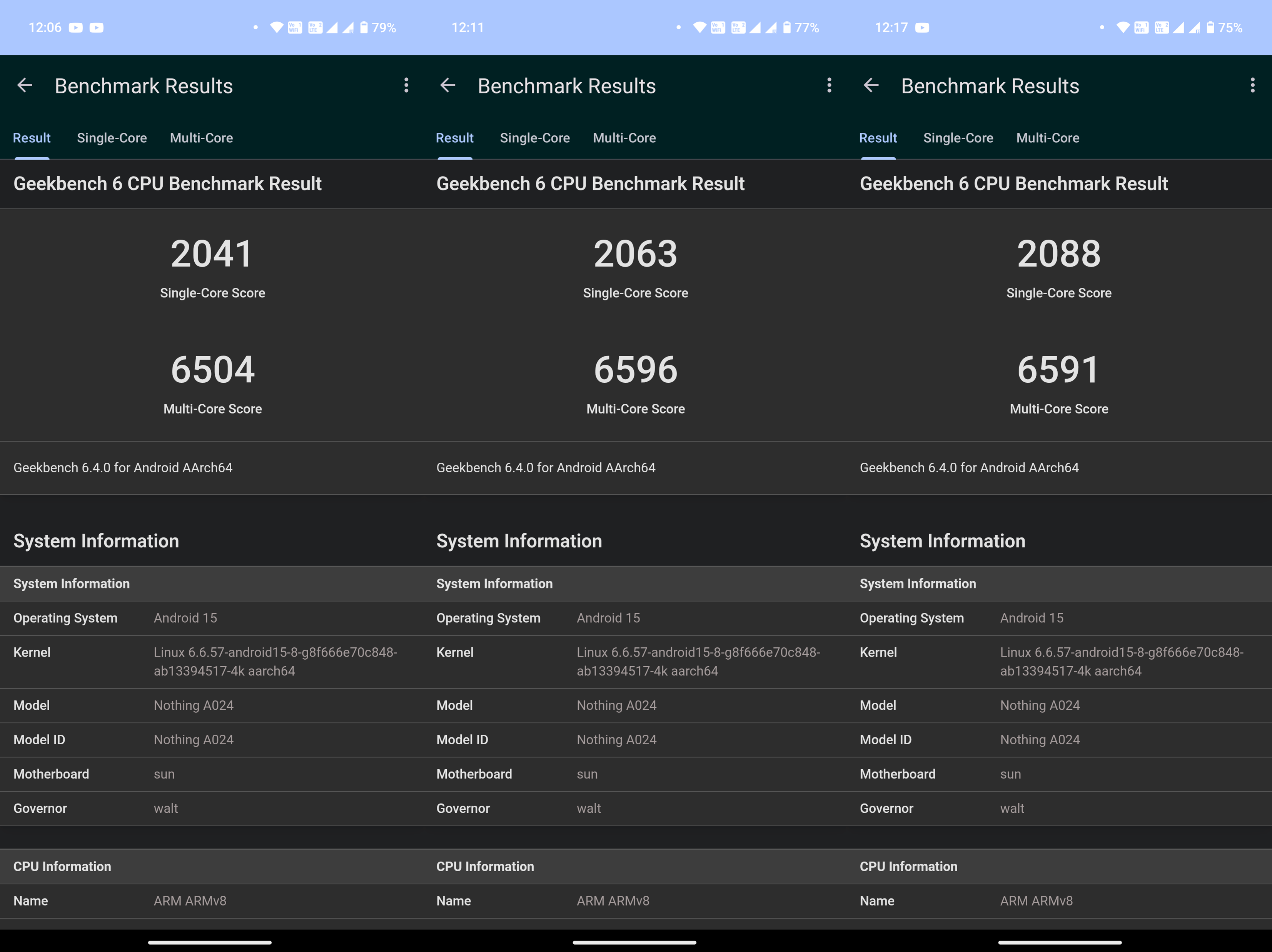 ▲ GeekBench 6 連續 3 次的測試結果(圖一) / 安兔兔評測的測試結果(左圖) / 3DMark Wild Life Extreme 20 輪壓力測試結果(右圖)