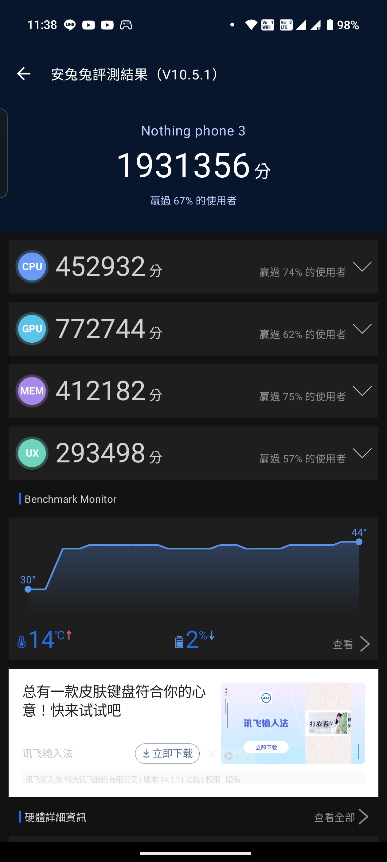 - 以下跑分全部都是在室溫 25 ℃ 下,所有設定都是系統預設值