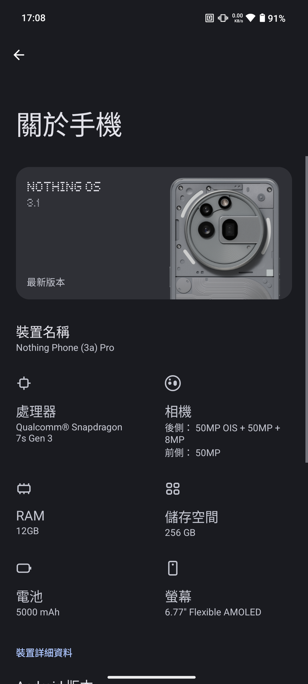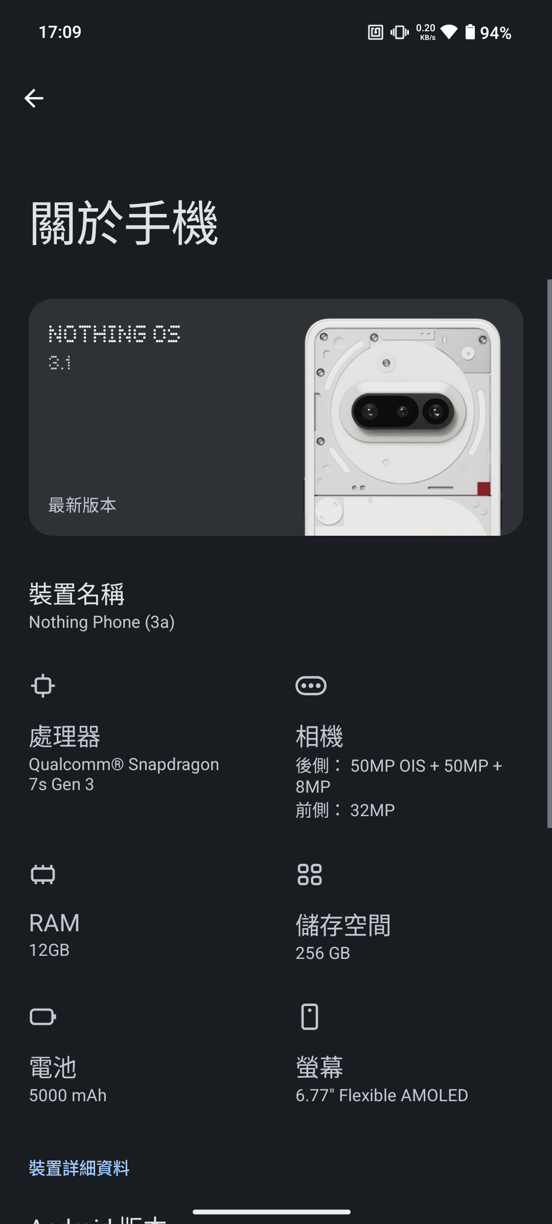 這次 Nothing Phone (3a) & (3a) Pro 採用的是比目前在售的機型還要更新的 Nothing OS 3.1。而我也發現,兩台機型所使用的系統韌體是同樣的,也就是說兩台機型代號其實是相同的,因此在許多地方會有非常接近的表現,不論是相機的 HDR 演算法或是遊戲效能體驗,可說是雙生機種。