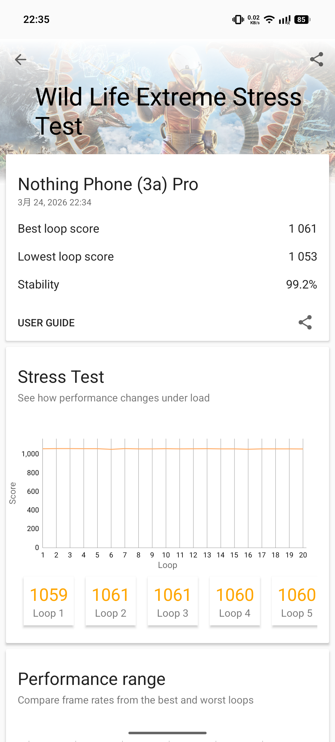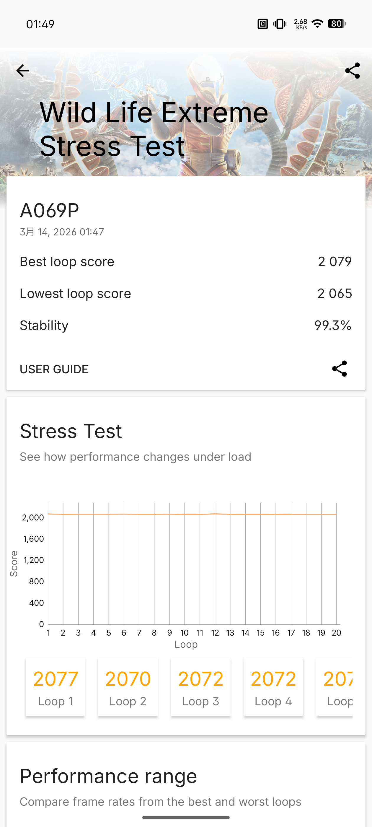 ▲ GeekBench 6 連續 3 次的測試結果(圖一) / 安兔兔評測的測試結果(左圖) / 3DMark Wild Life Extreme 20 輪壓力測試結果(右圖)