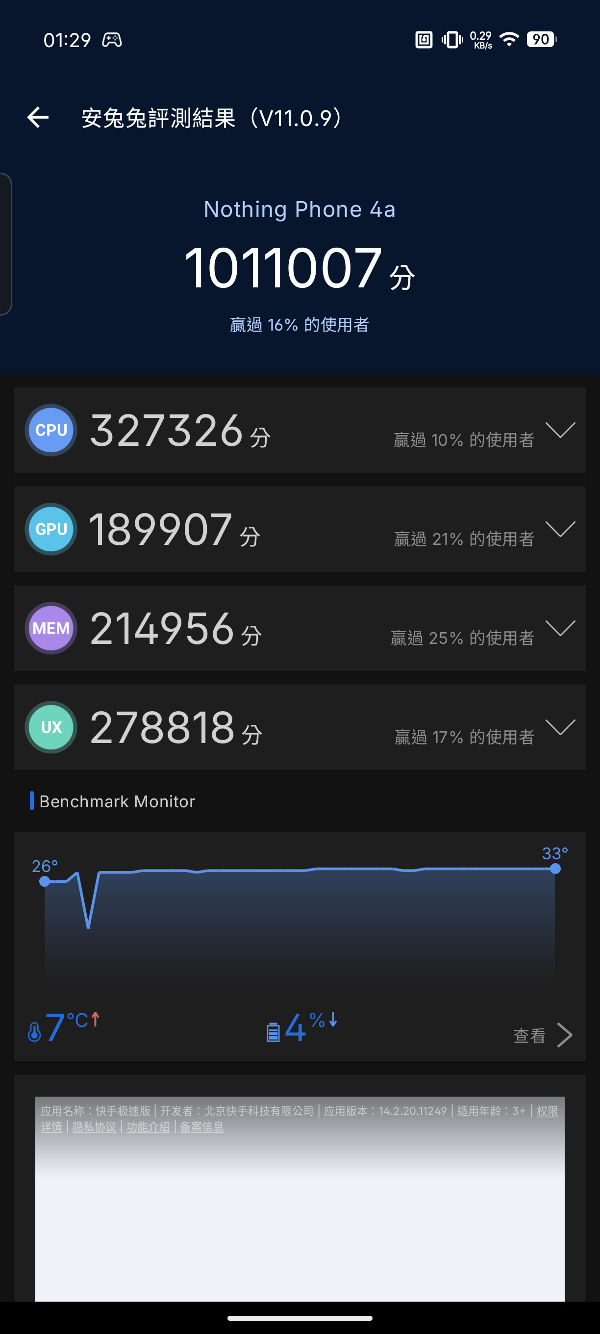- 螢幕亮度 80% 且螢幕更新率鎖在 (4a): 120Hz / (4a) Pro: 144Hz