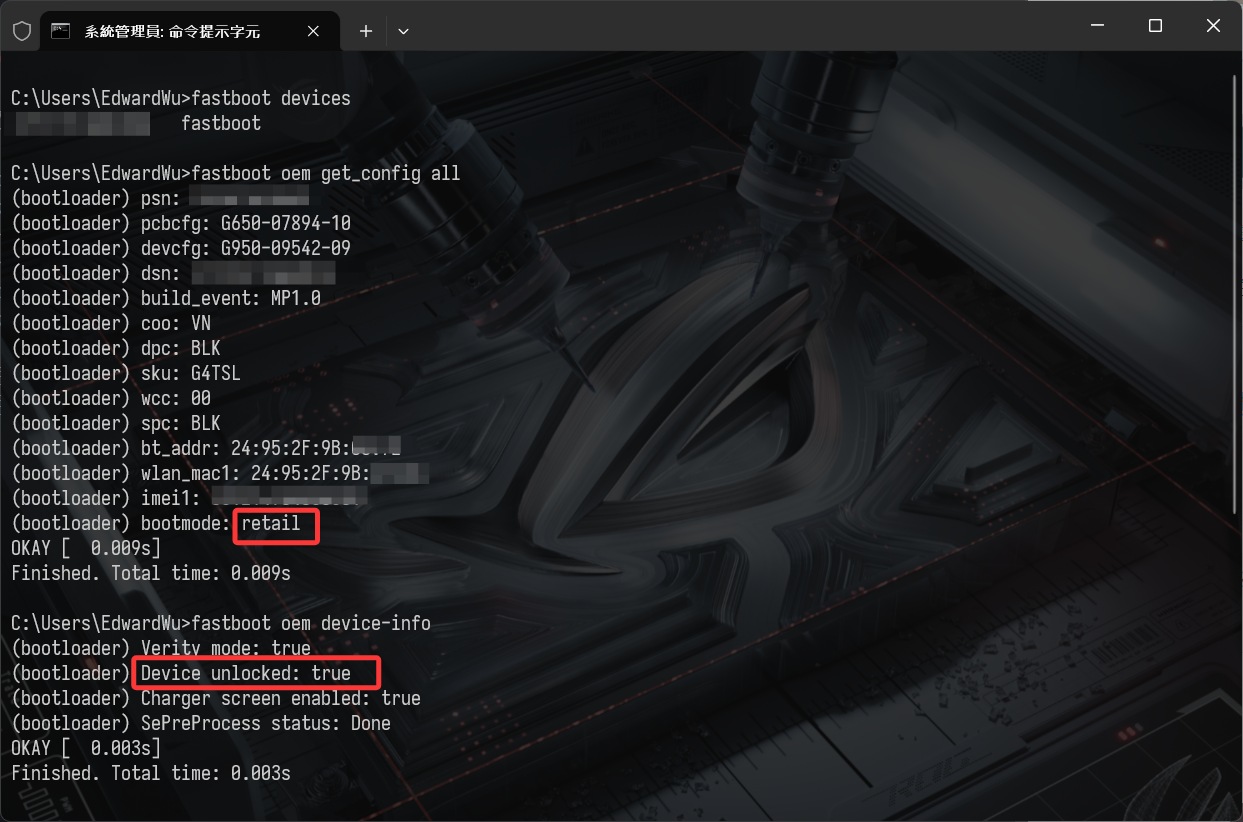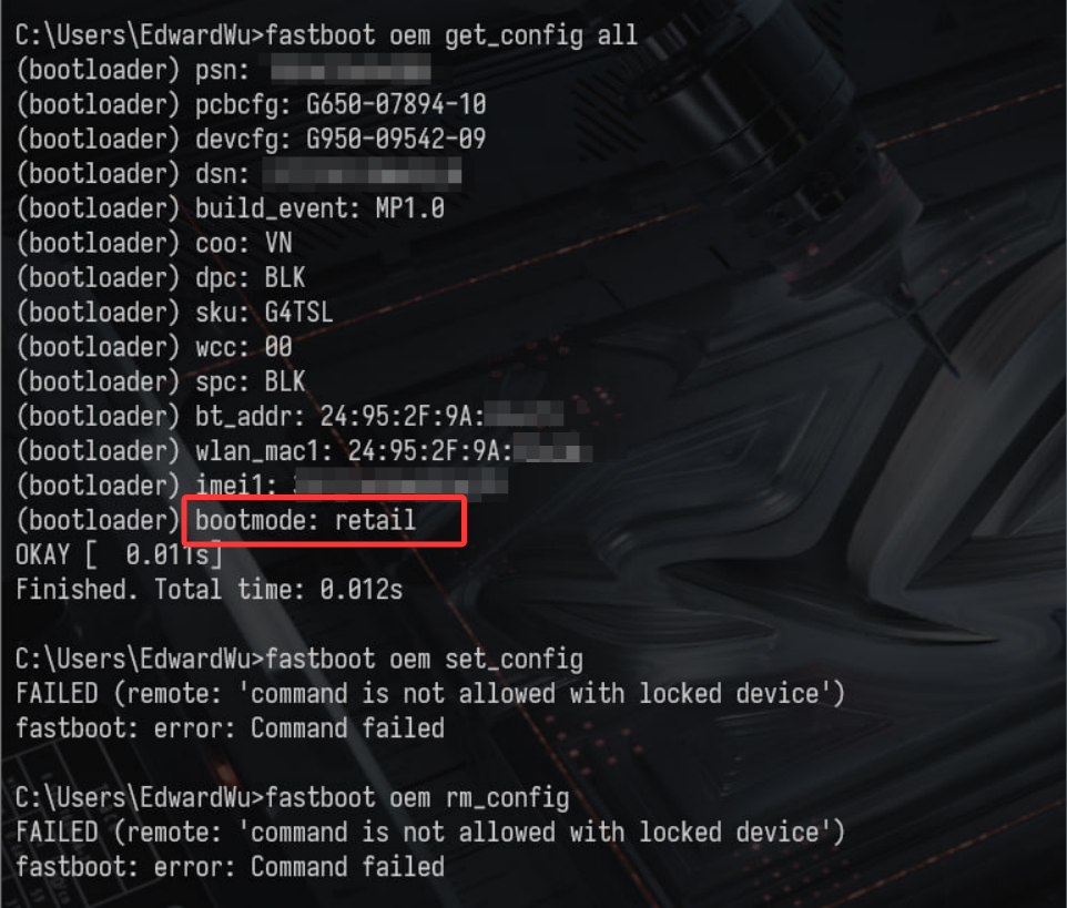 然而,修改 bootmode 則需要 unlock bootloader,而我也無法透過正常方式解鎖 bootloader,完全陷入了無窮迴圈。