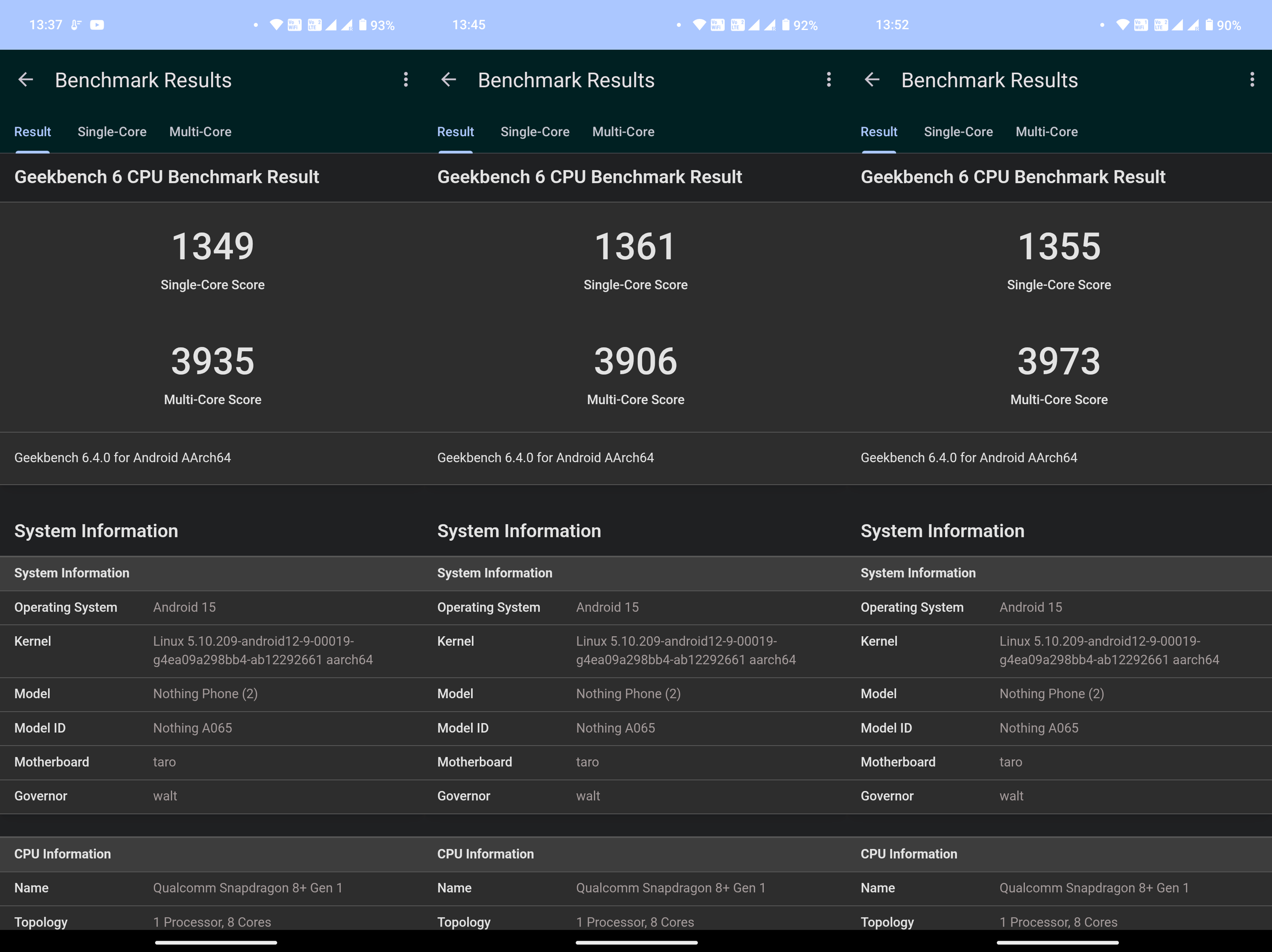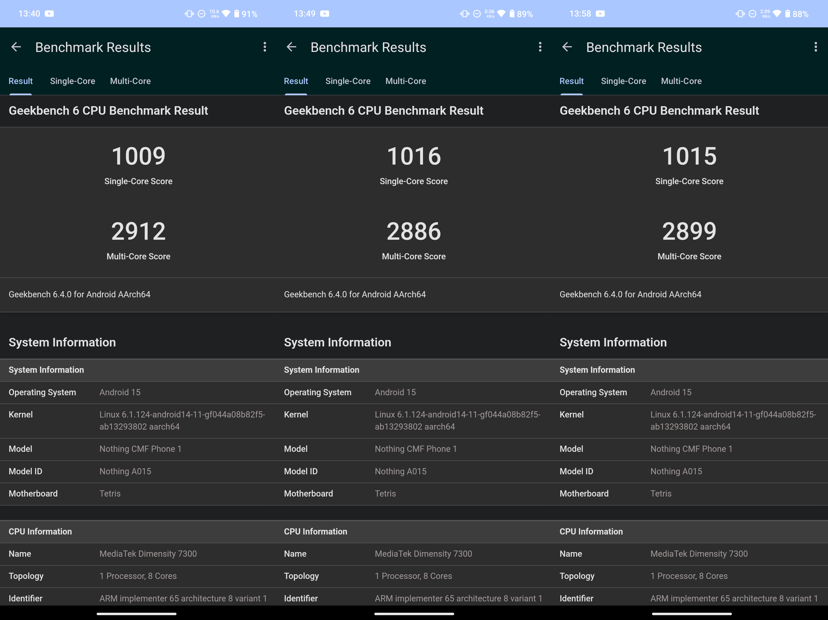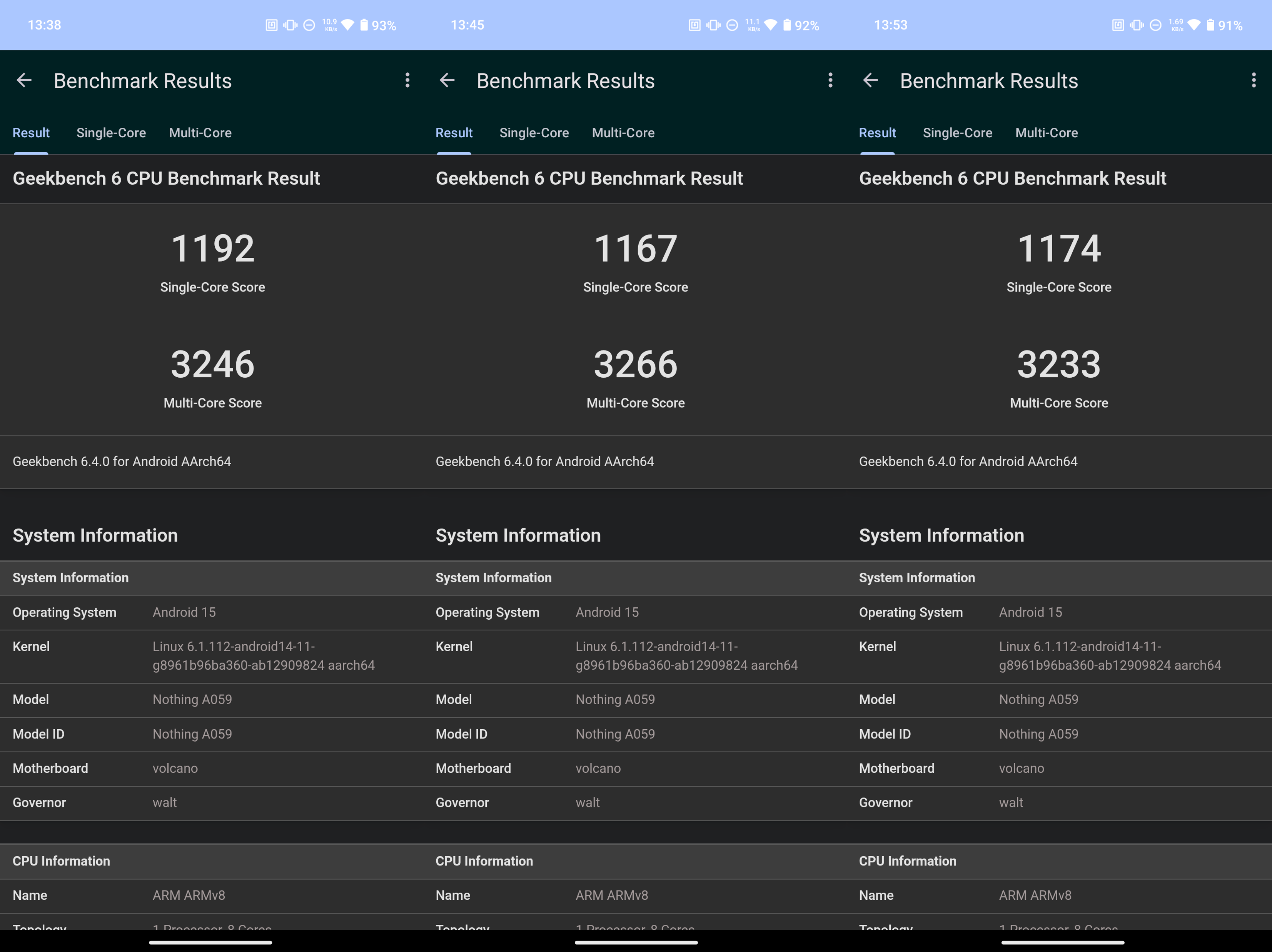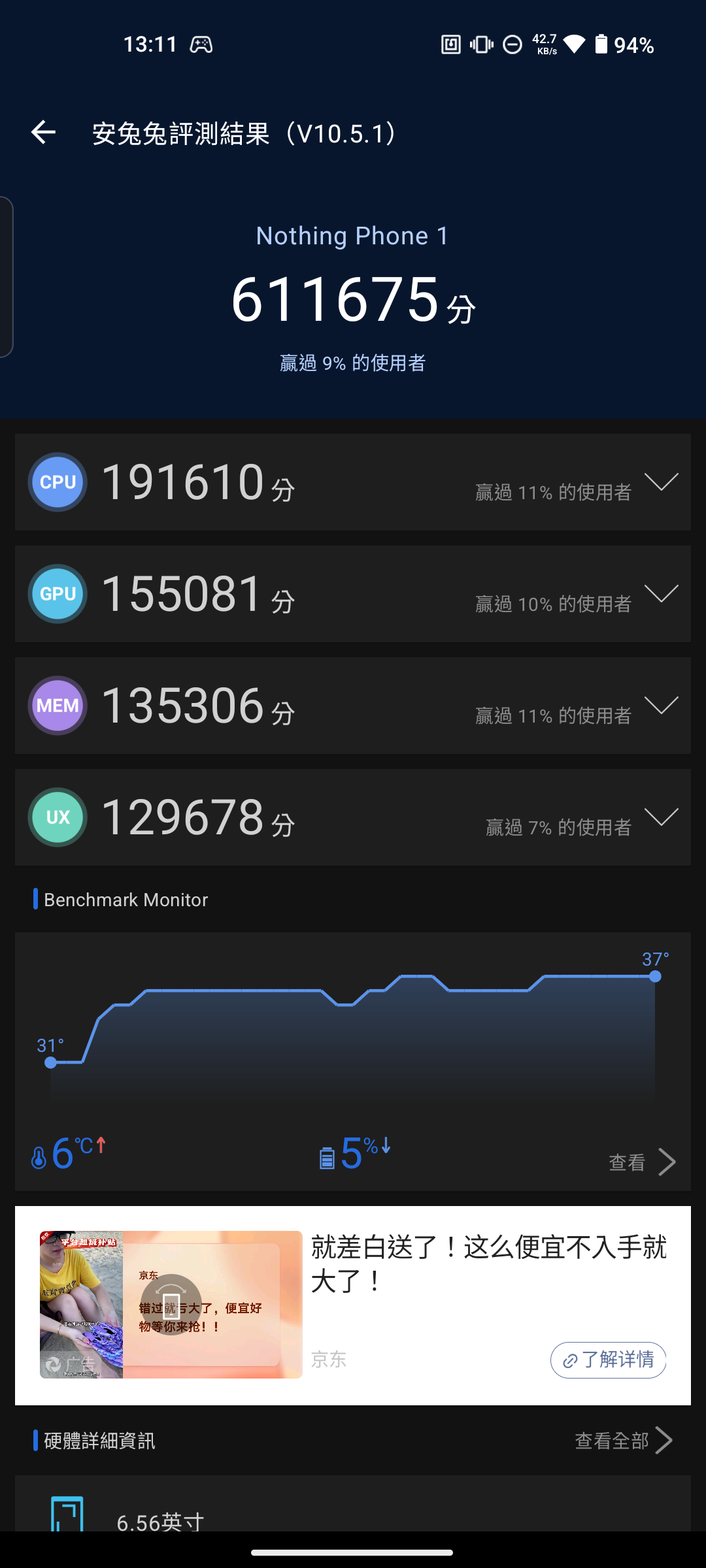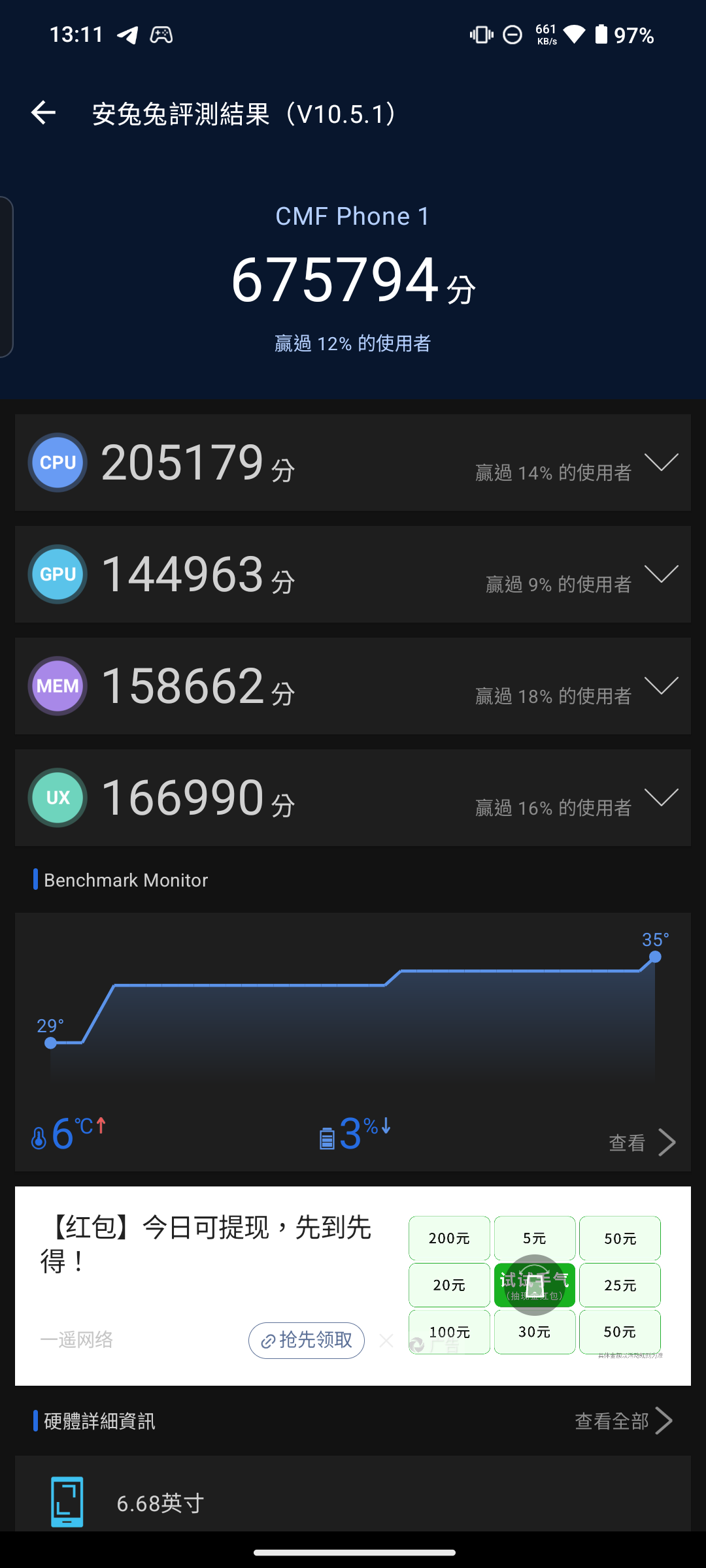而我這邊也幫各位做成圖表,可以更能判斷出效能高低。 可以從跑分結果得知,3a 與 3a Pro 畢竟是雙生機種,跑分只有些微差距。 而這次的主角 CMF Phone 2 Pro 的跑分成績,與上一代的 CMF Phone 1 差距也不大,由於兩台所搭載的 SOC 都還是聯發科天璣 7300(CMF Phone 2 Pro 搭載的是天璣 7300 Pro),本質上還是同一顆 SOC。