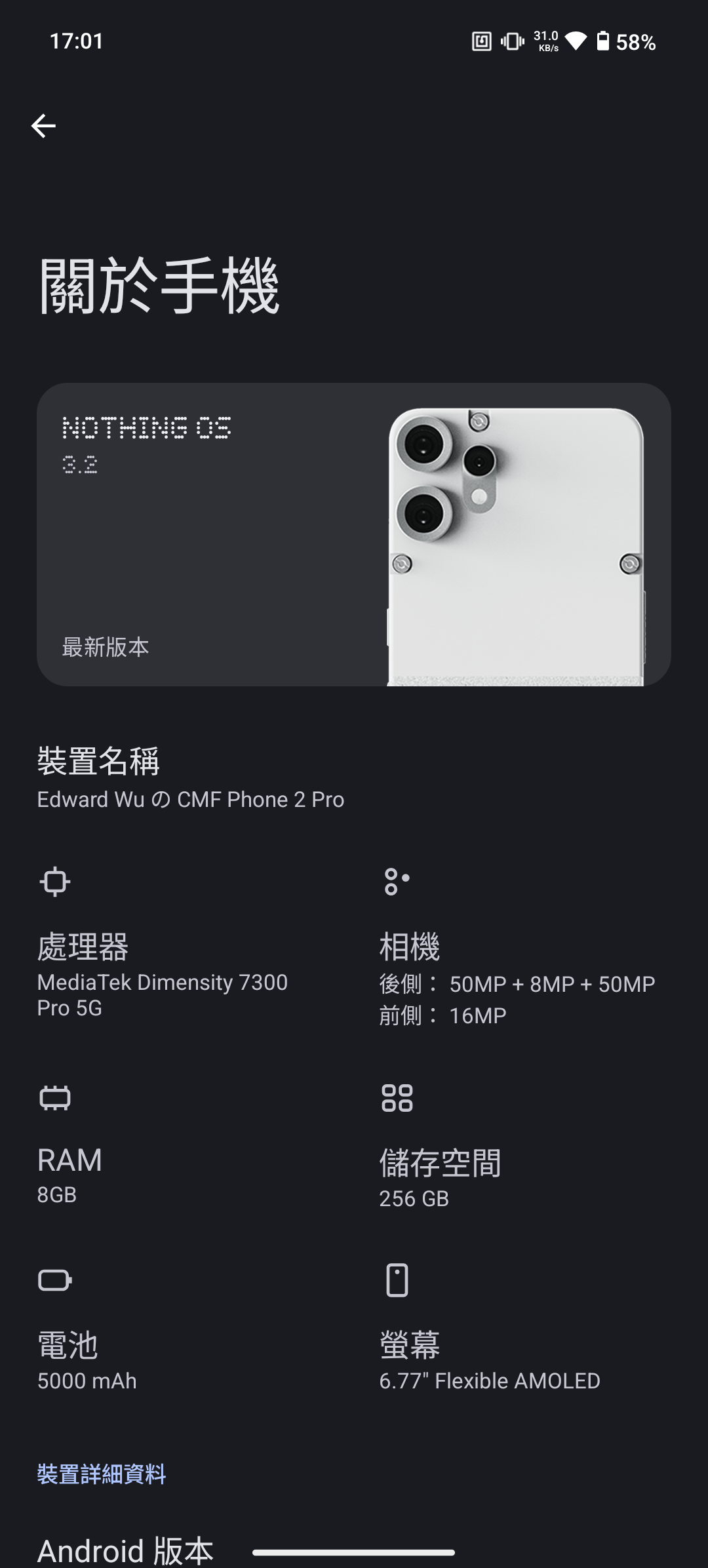 這次的 CMF Phone 2 Pro 出廠即搭載最新的 Nothing OS 3.2 Android 15,自從我拿到手上,也更新了 2 個版本,修正了許多的 bug 以及最佳化許多功能。系統更新這塊,可以從過往的 Nothing Phone 產品當中體現,Nothing OS 的系統更新,都是有在認真改善問題,每一次的更新 ChangeLog 都是滿滿一頁。