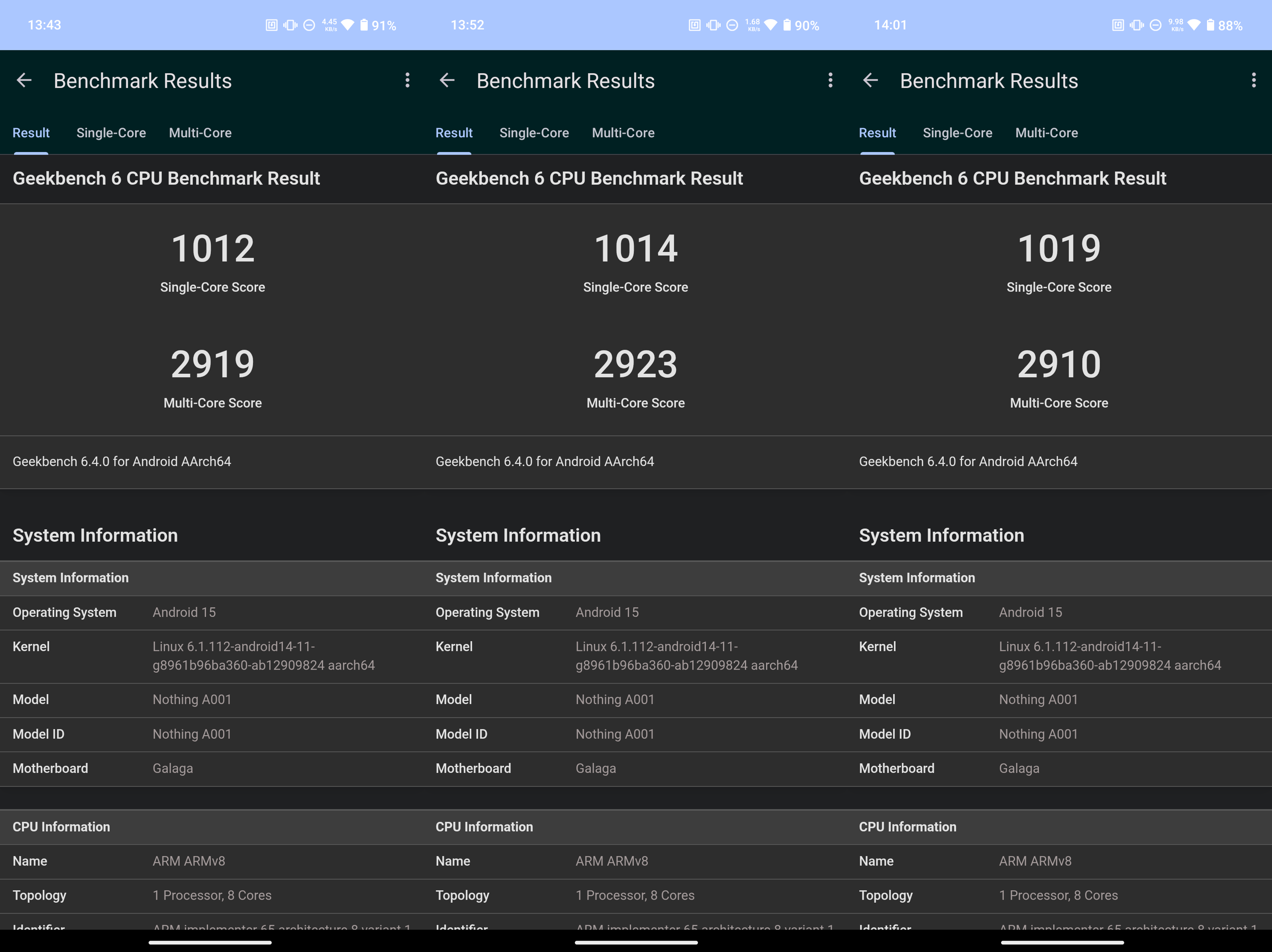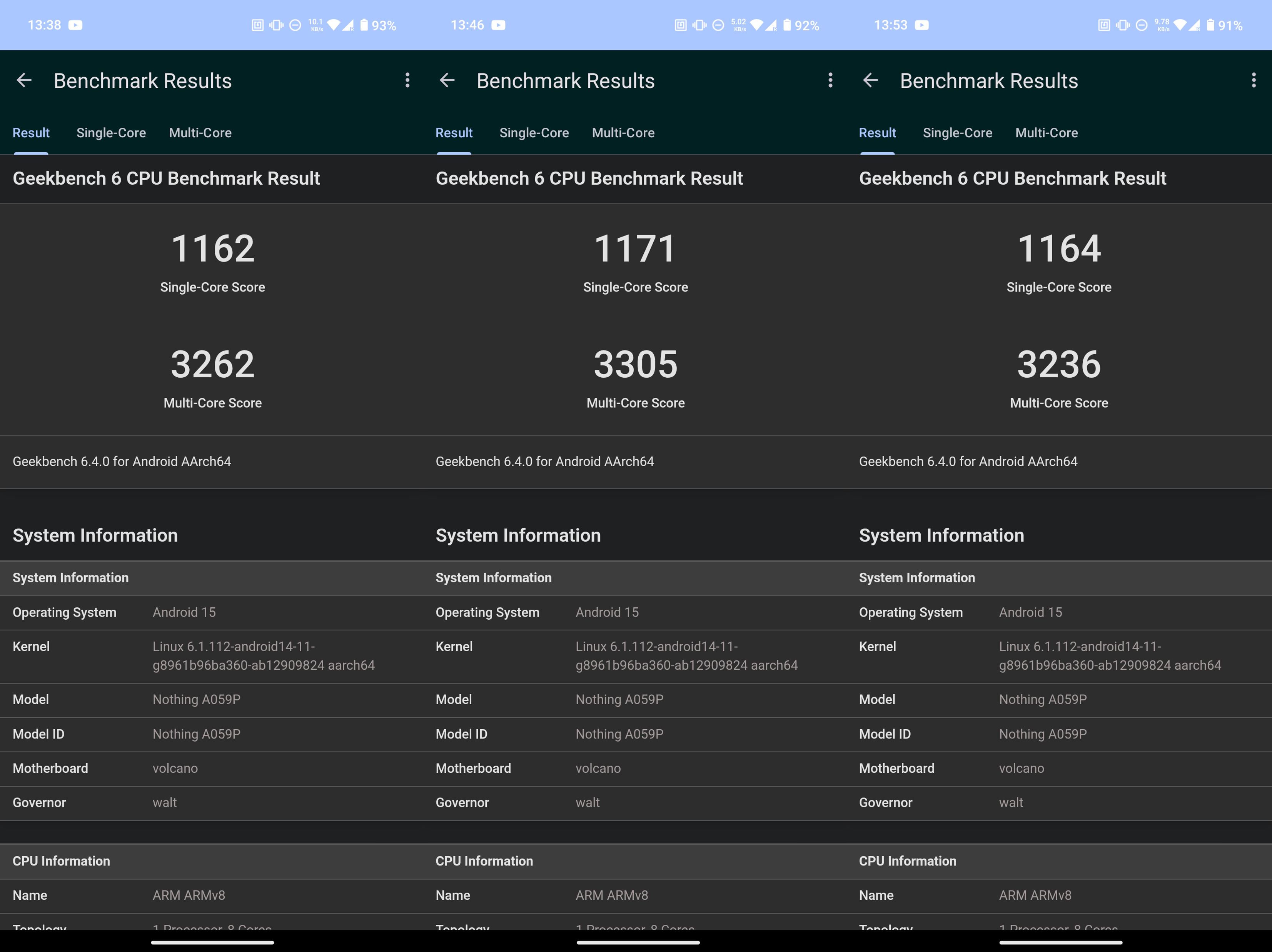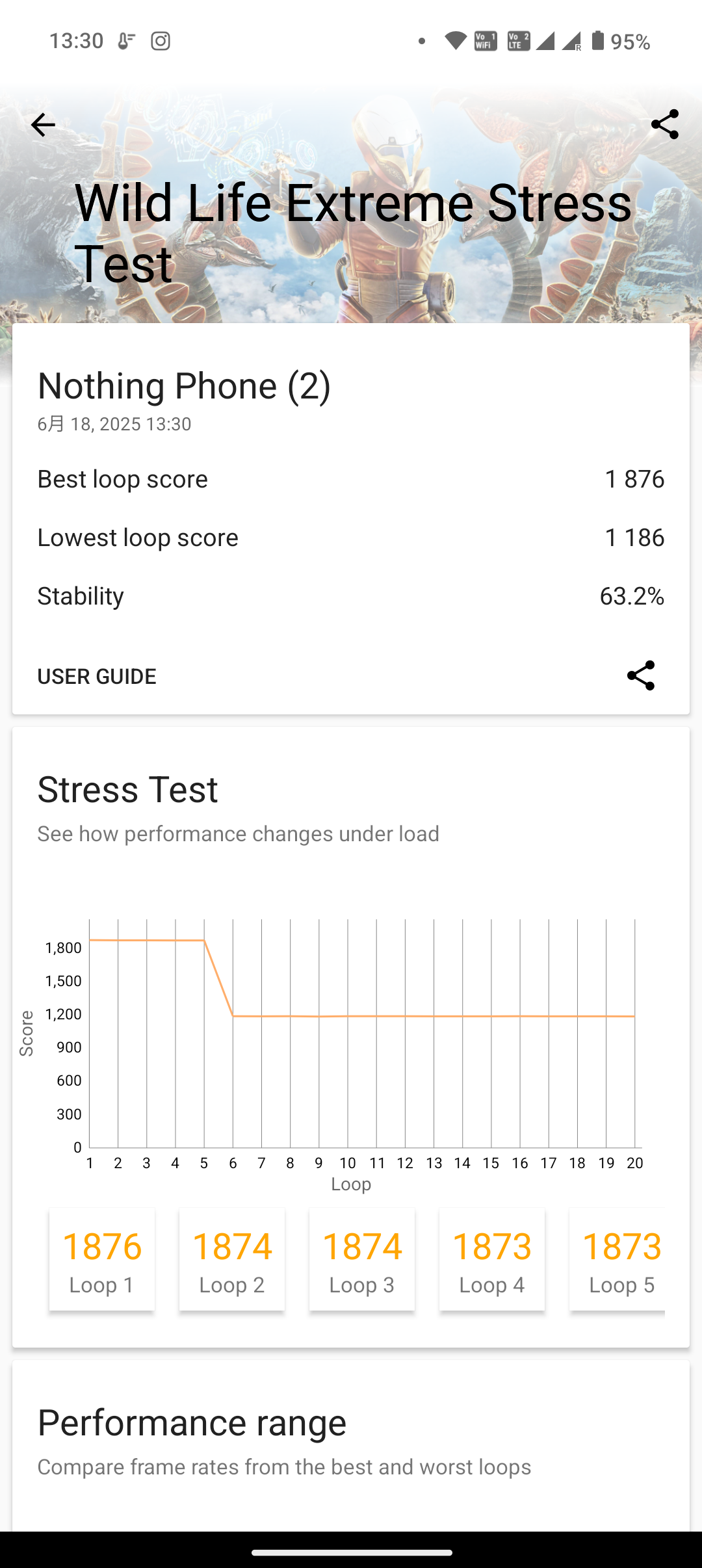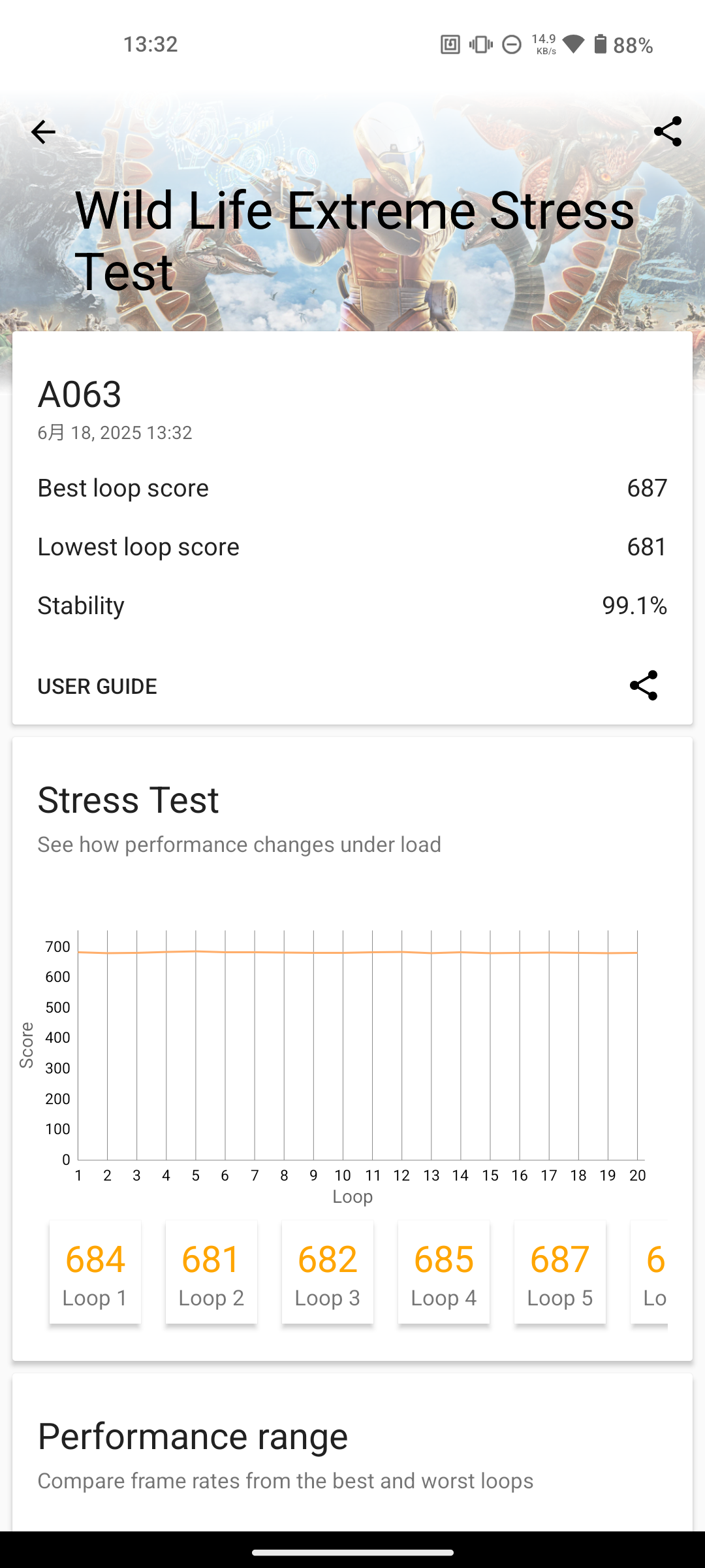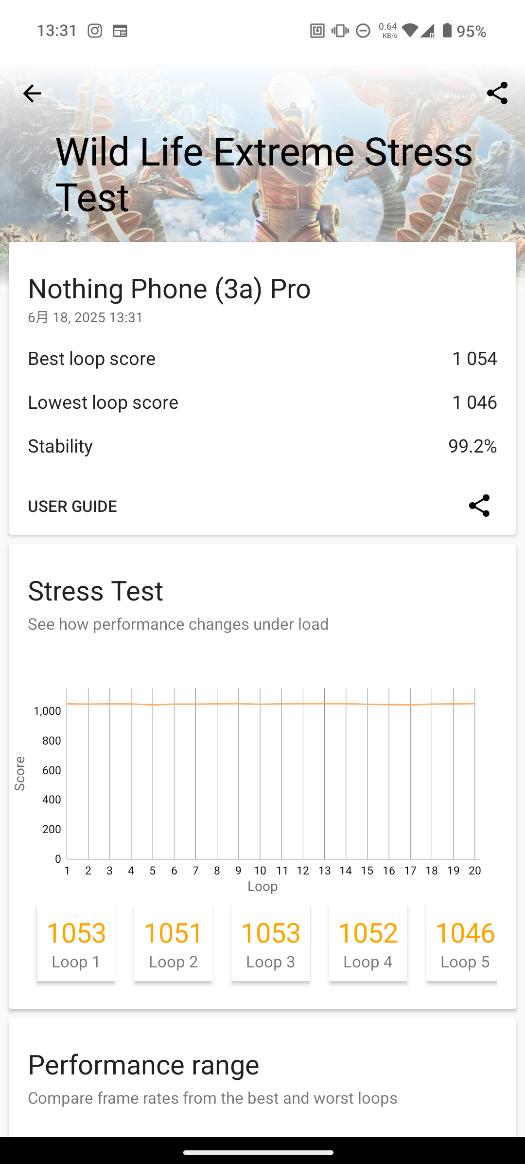 ▲ GeekBench 6 連續 3 次的測試結果(圖一) / 安兔兔評測的測試結果(左圖) / 3DMark Wild Life Extreme 20 輪壓力測試結果(右圖)