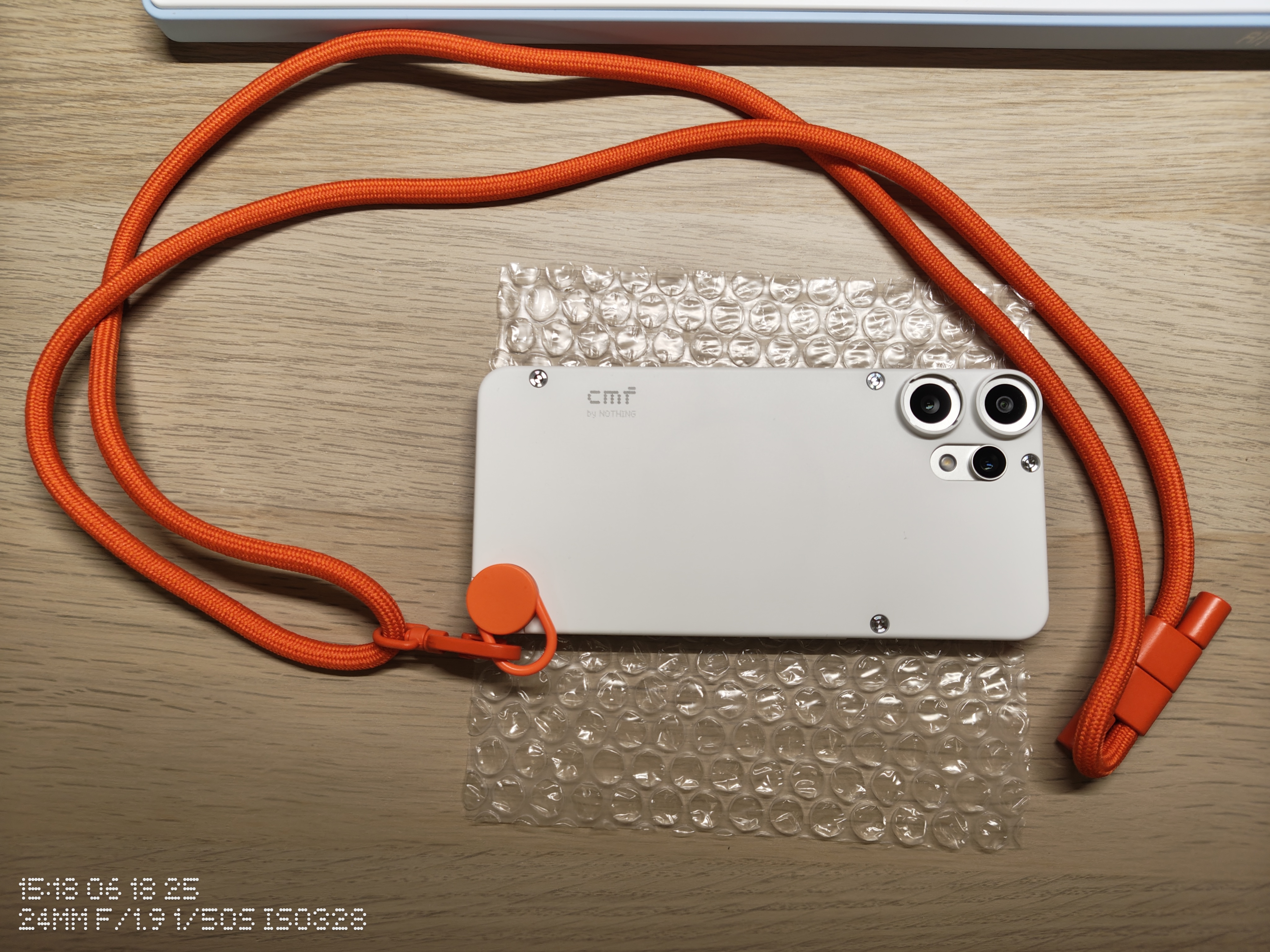 巧合的是,我手邊也有 CMF Phone 1 的配件,經過仔細檢查之後。 首先發現,掛繩實際上是同一個型號,並且官方沒說的是,CMF Phone 1 的支架也可以用在 CMF Phone 2 Pro 上面,不論是否有安裝上「萬用手機背蓋(殼)」。但是,經過我的測試之後,我認為有安裝背蓋,再加上支架,會比起沒有背蓋的安裝方式,來的更穩固。